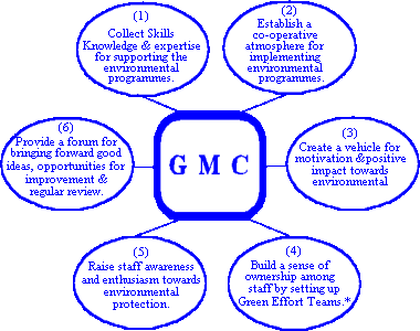 The GMC helps the Green Manager develop and implement the environmental programmes in the following ways :
