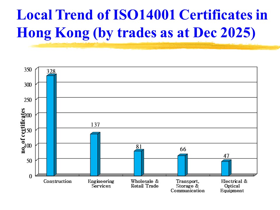 The Directory of ISO 14001 certified companies in Hong Kong reflects information received from local certification bodies by the Environmental Protection Department (EPD). The information has not been verified with the companies concerned. If your company is certified but not listed, or any information needs correcting, please inform us via email at enquiry@epd.gov.hk.