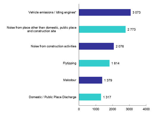 Pollution complaints that fall within the EPD's jurisdiction and require investigation are referred to the relevant staff. Other complaints or issues are referred to the relevant government departments. In 2022, there was a decrease of 9% in the total number of pollution complaints received compared that in 2021 (from 22 753 cases in 2021 to 20 779 cases in 2022). Air pollution complaints constituted 36.2% of the total number of complaints received, followed by waste & water pollution complaints (27.2%), noise pollution complaints (30.2%), and miscellaneous pollution complaints (6.4%). Most of the air pollution complaints concerned emissions from vehicles (40.8%).