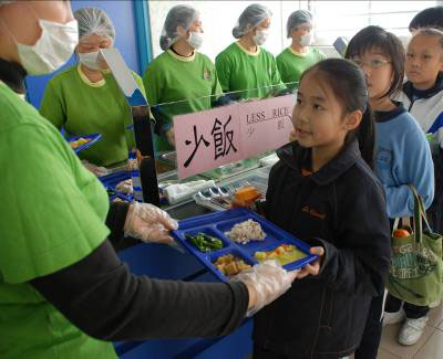 「環境及自然保育基金」資助學校實行現場派飯 Environment and Conservation Fund provides funding to help schools adopt on-site meal portioning 為進一步減少廚餘和即棄飯盒,政府鼓勵全港學校簽署環保午膳約章,承諾自願制定和執行符合環保原則的午膳政策,盡量實行現場派飯。「環境及自然保育基金」預留了5,000萬元,作為資助學校添置所需設施之用。環境局在2009年11月17日,11月18日和12月2日舉行了三場簡介會,出席的學校代表達600多名。截至十二月底,已有約150間學校表示有興趣作出申請。 To further reduce food waste and disposable lunch boxes, the Government will invite all schools to sign a Green Lunch Charter to encourage their commitment to adopt more environmentally friendly lunch arrangements such as on-site meal portioning. The Environment and Conservation Fund has earmarked $50 million to subsidize schools to install the necessary equipment. Three briefing sessions to over 600 school representatives were held on 17 November, 18 November and 2 December 2009. About 150 schools have indicated interests in submitting application as of end December 2009. |