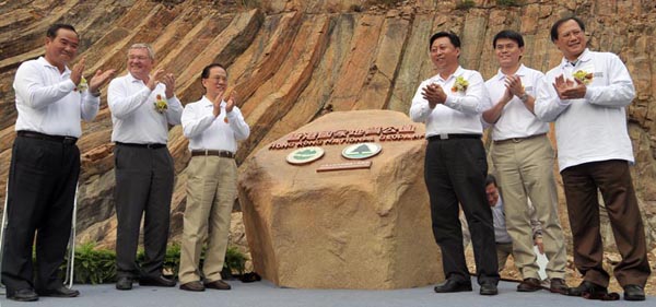 香港國家地質公園 Hong Kong National Geopark 香港國家地質公園於二零零九年十一月三日正式開幕。地質公園是具有特殊地質意義,並融合自然景觀與人文景觀而構成的獨特自然區域。保育、教育及可持續發展是地質公園的三大目標。香港可通過國家地質公園網絡,汲取經驗,全面保護香港珍貴的地質地貌資源,增進市民對地球科學的認識,為綠色旅遊活動增加新景點。 香港地質公園包括西貢火山岩和新界東北沉積岩兩個園區,共有八個景區,面積達50 平方公里。我們希望市民可抽空前往,欣賞香港壯麗的景色。 The Hong Kong National Geopark was opened on 3 November 2009. A geopark is a unique natural area with special geological significance and natural and cultural landscapes, and serves the three objectives of conservation, education and sustained development. Through the national geopark network, Hong Kong can gain relevant experience, preserve valuable geological and topographical resources more comprehensively, raise the public's awareness about geo-science, and foster the development of eco-tourism by adding new attractions. Hong Kong Geopark is made up of eight geo-sites distributed across the Sai Kung Volcanic Rock Region and Northeast New Territories Sedimentary Rock Region, covering a total area of about 50 square kilometres. We hope that members of the public may take time to visit these sites, and appreciate the natural beauty of Hong Kong.