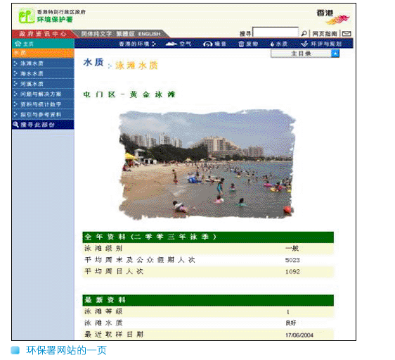 环保署亦一直尽力确保公众可透过不同渠道获取信息,尤其是确保能迅速地向公众定期发放泳滩水质等级这类重要资料。现时市民可致电泳滩水质热线2511-6666获得最新的水质等级资料,也可浏览环保署的网站 http://www.epd.gov.hk ,除查阅最新的泳滩水质等级外,还可得知关于监测计划内每个泳滩的基本资料,例如泳滩的位置及可用设施等。