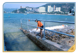 環保署督察抽取海水樣本時,需從離岸不遠處水深及大腿至腰的水域抽取樣本。樣本在進行測試前須儲存於攝氏4度低溫下。我們的督察除了抽取海水樣本,還會檢視泳灘附近的河溪或排水渠並抽取水樣本檢驗是否有污染情況。