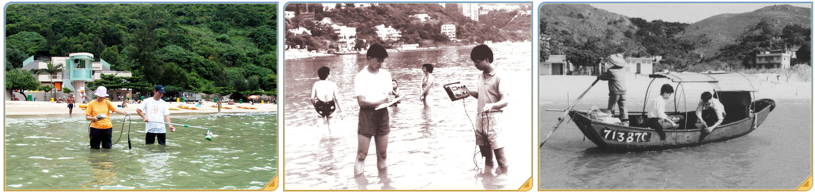 現行的海水抽樣和實地量度水質 (左),對比1990年代(中)和1980年代(右)