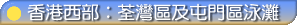 環保署將其監測的全港泳灘按地理位置分組:南區泳灘指位於港島南岸的海灘;西貢區泳灘涵蓋新界東岸和該區各泳灘;荃灣及屯門歸納為一區,因該處的泳灘均位於荃灣至屯門的沿岸;至於離島區則包括位於大嶼山、南丫島及長洲多個環境優美的海灘。 |