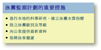 環保署自1986年成立以來,一直負責監測香港的泳灘水質,迄今已20年。多年來,我們先後實施多項重大措施,以促進和保障泳客的健康與安全。這些措施包括: