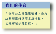 香港的泳滩水质监测计划是建基于世界认可的严谨科学研究成果。此计划不断造福香港独特的自然环境和公众健康,带来令人欣慰的改变,对此我们深感自豪。环保署经过多年努力,成功建立了一套有效的监测、维护和行动系统,推行各项措施,大大纾缓了困扰香港多年的水污染问题。回想以往,由于许多泳滩水质欠佳,市民无法享用这些优美的天然资源。而2005年夏季期间,每月均有超过100万市民到泳滩消闲,显示了公众对香港泳滩水质的信心,而环保署所提供的信息亦发挥其应有的效用。