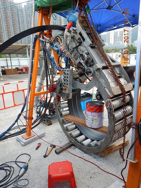 与传统开坑式方法相比,螺旋缠绕修复技术(SPRTMPE)被视为较宁静的施工方法之一。绕线机透过螺旋式缠绕技术,把以钢加固的聚乙烯条缠绕成喉管形状。然後,利用聚乙烯物料融合在这些以钢加固的聚乙烯条上,在主喉管内制成新喉管。此方法可避免使用空气压缩机及锅炉,也省却了拖拽内衬物料的过程,避免产生摩擦声。
