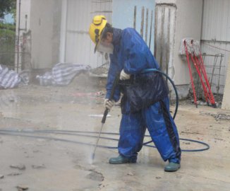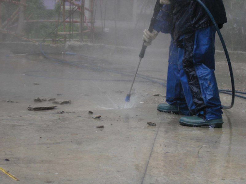 高壓噴水器主要用於去除劣化混凝土及瓷磚。高壓噴水器與手提鑽和鑽頭錘的不同之處在於使用時不會產生結構性撞擊,因此結構源性噪音傳播會大幅降低,減少破壞建築物的結構及產生較少噪音,在有人居住的建築物內亦能使用。