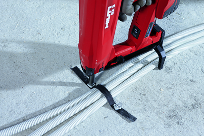 The battery-driven fastening tool is capable of fastening cables, conduits, and installing drywall or wood tracks into concrete and steel plate. Its advantages include low recoil, dust-free and virtually no vibration. Compared to traditional hammer drills, it greatly reduces the noise impact without compromising on the productivity. Compared to gas-actuated fastening tool, changing of gas cans and cleaning of dirty cartridges are not required.