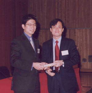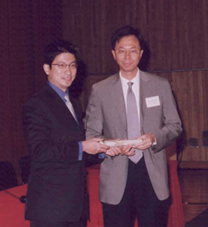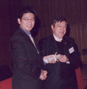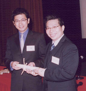 Presenting to Dr. CHAN Kei-Biu, Chairman of Hong Kong Electronic Industries Association