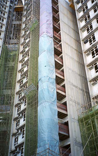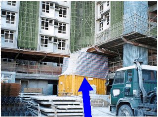 隔塵 ── 完全圍蔽廢物槽及箕斗吊機,以免在樓宇高層運送易生塵埃的物料時塵埃飛揚。