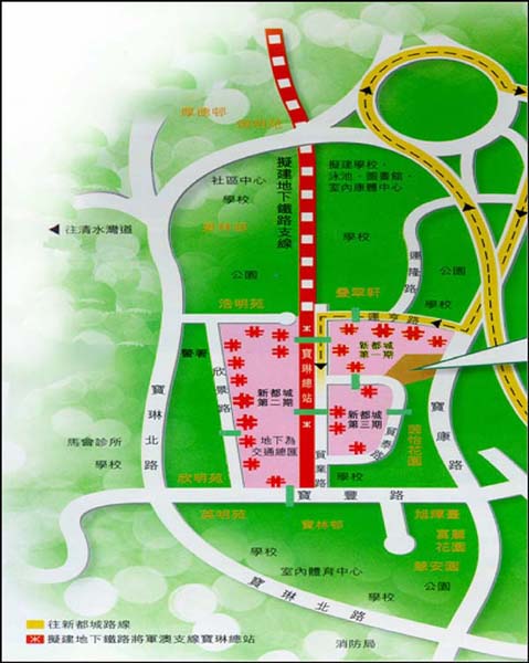 地鐵將軍澳支線寶琳站位於大型住宅發展項目新都城之中央位置。該站施工期間,新都城已有多幢大廈竣工而住戶正逐漸遷入,行人亦熙來攘往。