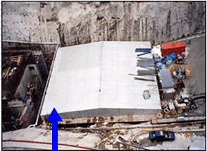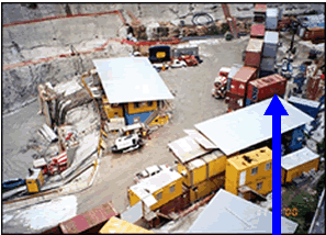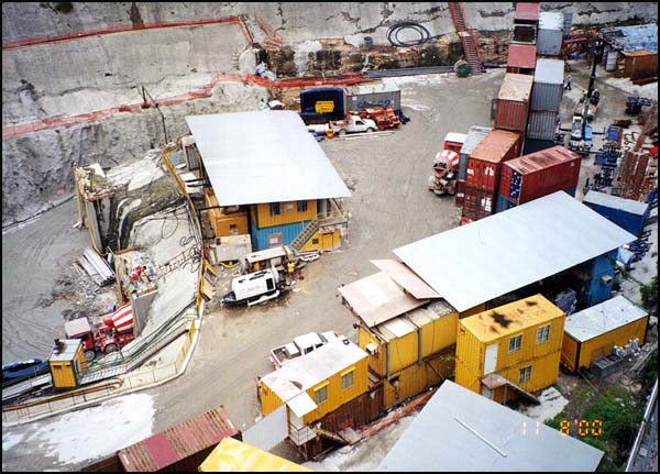 遮蔽 ── 隧道入口下層工作台安裝巨型隔音屏障,隧道入口上層工作台的出入通道設置3至4層貨櫃及吸音嵌板,避免滋擾附近噪音感應強的地方。