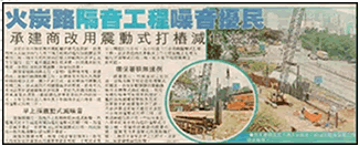 低噪音施工方法 ── 靠近禾輋邨的打樁工程大部份採用噪音較低的非撞擊式打樁機,樁尖裝上彈性物料,結果震動錘的噪音減低約3分貝。