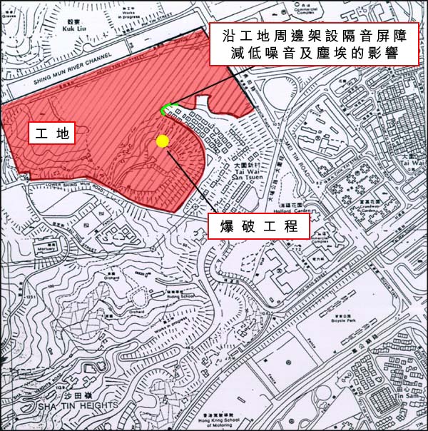 工地距離附近對噪音感應強的地方,即大圍新村不足20米。進行爆破及挖掘工程時產生的噪音及塵埃,對環境污染尤其嚴重。本工程亦涉及數宗由附近居民及區議員提出建築噪音及塵埃投訴。
