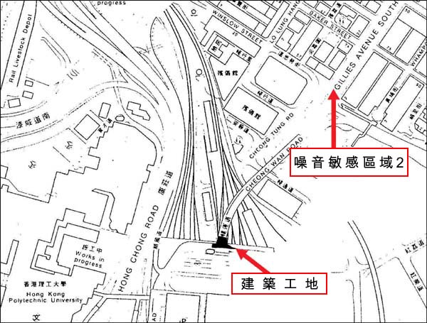 隔音罩 ── 環保署為盡量減輕噪音,分別與承建商及路政署聯絡,承建商安裝以鋼片製成及內層鋪墊50毫米厚的吸聲物料的雙層隔音罩,減輕在鑿破路面工程時所發出的噪音。