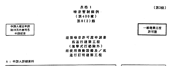 - 监 督 如 有 理 由 相 信 申 请 表 格 上 所 建 议 的 机 动 设 备 会 用 于 订 明 建 筑 工 程 , 则 不 会 发 出 许 可 证 。 请 在 此 按 一 下 参 看 噪 音 管 制 条 例 下 的 指 定 范 围 及 在 此 按 一 下 参 看 与 订 明 建 筑 工 程 有 关 的 机 动 设 备 的 例 子 。 申 请 人 须 在 表 格 第 E.2项 申 明 这 些 机 动 设 备 的 用 途 或 这 些 设 备 不 会 用 作 进 行 订 明 建 筑 工 程 。