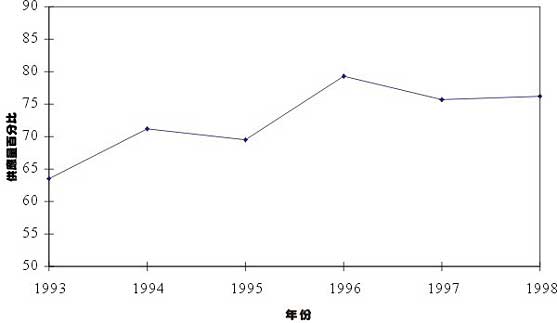 圖 表 3 . 3 c : 廣 東 輸 港 的 淡 水 供 應 百 分 比