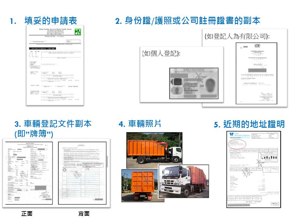 任何人士 / 公司如欲使用废物转运服务,可向环境保护署署长(署长)申请开纳帐户,及为其名下的废物收集车辆登记。申请人必须为车辆登记车主。