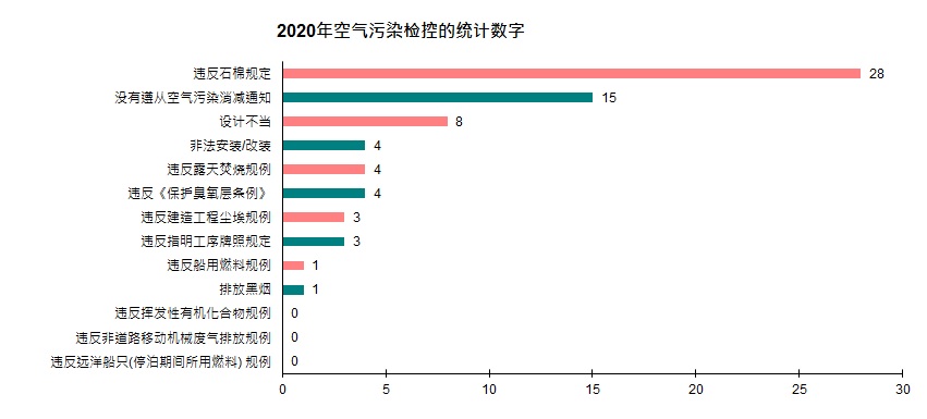 2020年执行空气污染管制的统计数字