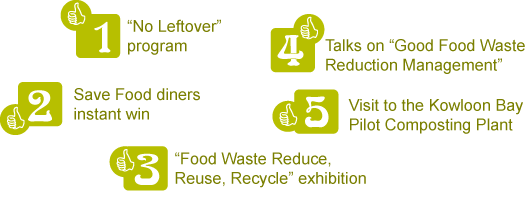 to demonstrate the concerns of malls and eateries over Hong Kong’s food waste problem and determination in promoting and participating in “Save Food” activities.