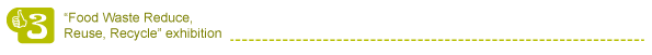 Exhibition at podium will display environmental issues caused by food waste and how to reduce, reuse and recycle food waste. It will also introduce the cost behind such as emissions of carbon dioxide and food mileages etc., not just providing information but also to make clear the importance of cherishing food. Exhibition will tour around participating malls.