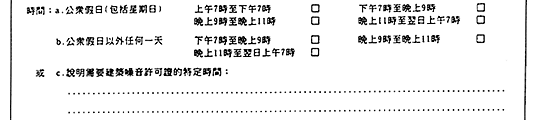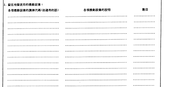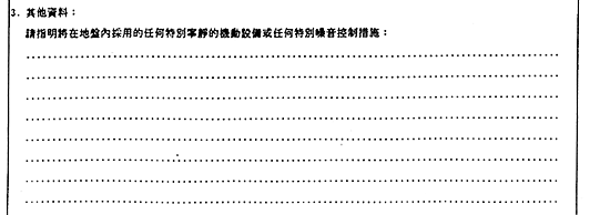 填 寫 申 請 表 格 的 指 南 一 般 建 築 工 程 請 在 此 按 一 下 瀏 覽 部 分 常 用 機 動 設 備 的 照 片 。 申 請 人 可 列 印 出 彩 色 3R照 片 , 作 申 請 許 可 證 之 用 。 提 交 的 每 張 照 片 應 清 楚 顯 示 一 部 機 動 設 備 , 規 格 為 彩 色 3R。 請 在 此 按 一 下 瀏 覽 部 份 機 動 設 備 的 照 片 。 請 在 此 按 一 下 瀏 覽 控 制 噪 音 措 施 、 低 噪 音 建 築 設 備 及 技 術 的 實 例 。 如 擬 使 用 的 機 動 設 備 是 載 於 技 術 備 忘 錄 內 , 監 督 會 採 用 備 忘 錄 所 訂 的 聲 功 率 級 進 行 評 估 。 如 申 請 人 希 望 使 用 備 忘 錄 沒 有 訂 明 的 低 噪 音 建 築 設 備 或 其 他 設 備 , 請 提 交 一 份 噪 音 量 度 報 告 。 請 在 此 按 一 下 瀏 覽 「 擬 備 機 動 設 備 噪 音 量 度 報 告 指 引 」 。 如 申 請 須 夾 附 噪 音 量 度 報 告 , 請 在 遞 交 申 請 前 與 環 境 保 護 署 有 關 人 員 聯 絡 , 查 詢 有 關 規 定 。 請 在 此 按 一 下 瀏 覽 各 分 區 污 染 管 制 辦 事 處 的 地 址 及 聯 絡 電 話 。