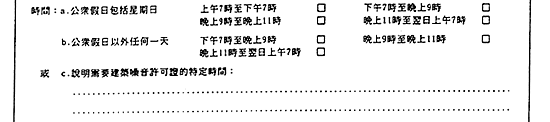 申 請 人 若 申 請 適 用 於 跨 區 的 「 建 築 噪 音 許 可 證 」 , 務 須 提 交 下 列 文 件 |