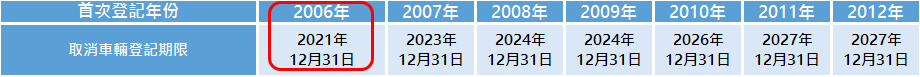在此日期後,須獲得豁免 才能續領車輛牌照以延後淘汰限期 |