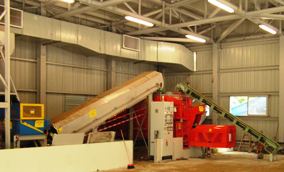 我們先將馬廄廢物運送至堆肥廠內的前期處理廠房作含水量測試,然後放進進料斗,經鐵金屬分離機、非鐵金屬分離機和轉盤分離機將廢物中的含鐵金屬、非鐵金屬成份和含塑料物質抽離。廢物經攪碎機攪碎後,由輸送機運至密封式滾筒堆肥機作三至四日生物降解處理。過程中所產生的異味會經除臭裝置移除。我們再將半成熟的堆肥會運至堆肥棚進行四十二至四十五日的熟化程序。最後,成熟的堆肥經測試符合合約標準後便可出售。