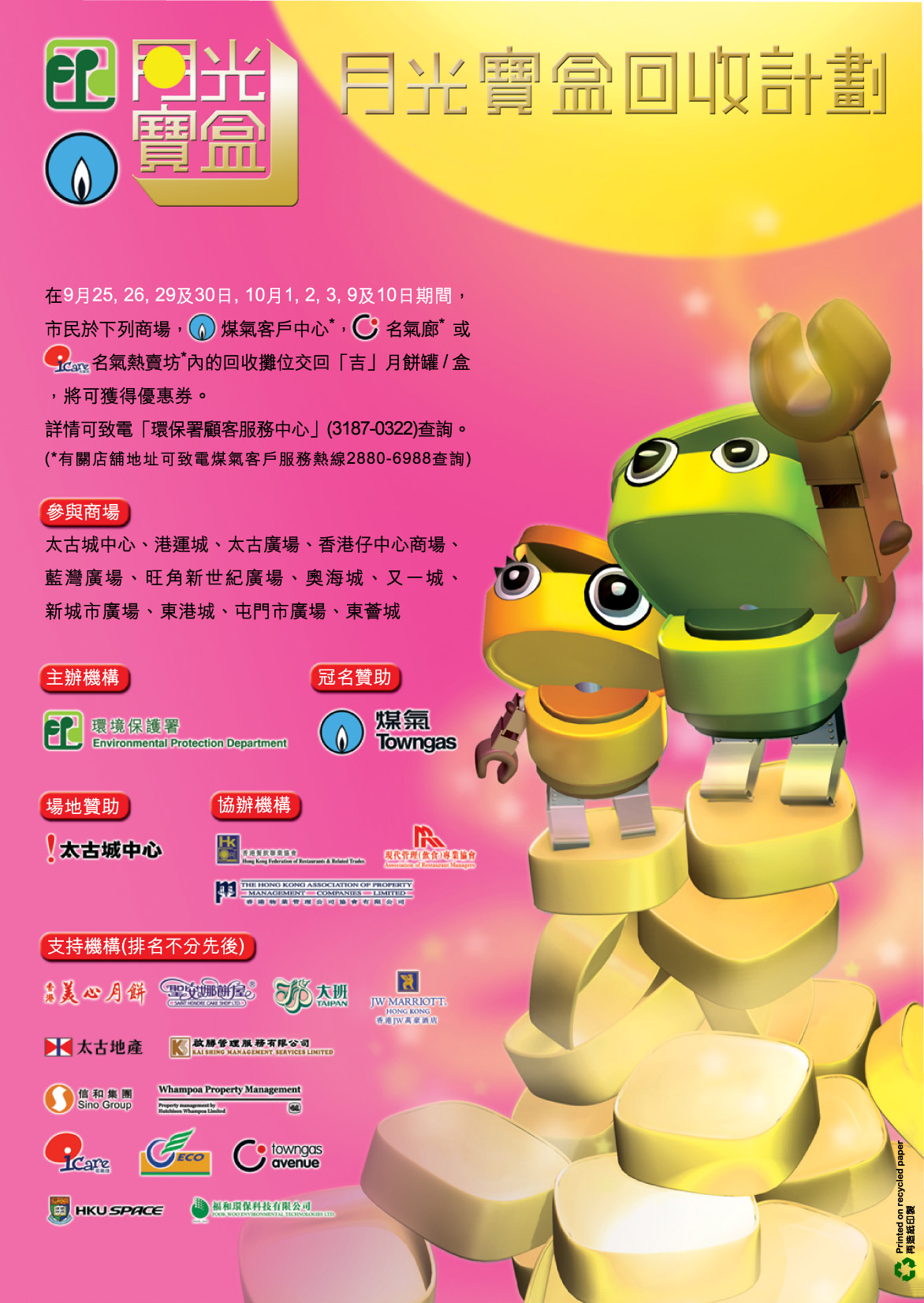 「這是環保署與飲食業攜手推行的『夥伴計劃』第二年舉辦的月餅盒回收活動。」